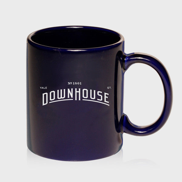 Drink your favorite coffee and represent your favorite neighborhood restaurant at the same time. Dark blue with white letters.